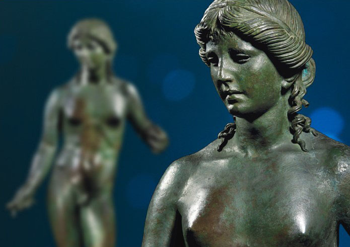 This large bronze statuette dating to the 2nd or 1st century BC is a superb depiction of Apollo, the Greek god of the arts, male beauty and light. It was likely used to decorate a Roman villa on the outskirts of Pompeii that was destroyed by the eruption of Mount Vesuvius. The Apollo survived and lay buried beneath the volcanic ashes, which saved it from a second form of destruction as most ancient bronzes were melted down from antiquity to the Middle Ages for their metal. Its addition to the Louvre collections offers us all the opportunity to view this extremely rare and remarkably preserved ancient masterpiece for the very first time.