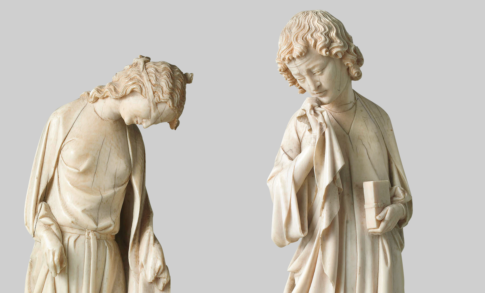 These two figures, once thought lost or destroyed, were the only missing pieces of a Gothic masterpiece. The seven ivory statuettes that make up the Descent from the Cross are remarkable for their exquisite craftsmanship, exceptional state of preservation and dramatic strength. The complete work is on display in room 503 (Richelieu wing, Level 1) of the Department of Decorative Arts.