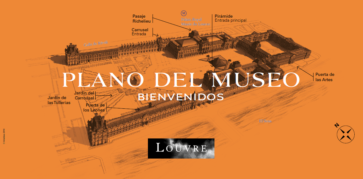 Debajo de la Pirámide encontrarás varios puntos de información, donde se distribuyen planos del museo gratuitamente, disponible en español y en otras 8 lenguas. Para saber si las salas que quieres ver están abiertas el día de tu visita, consulta el calendario previsto a este efecto. Para cualquier otra consulta, puede contactarnos en el +33 (0)1 40 20 53 17.