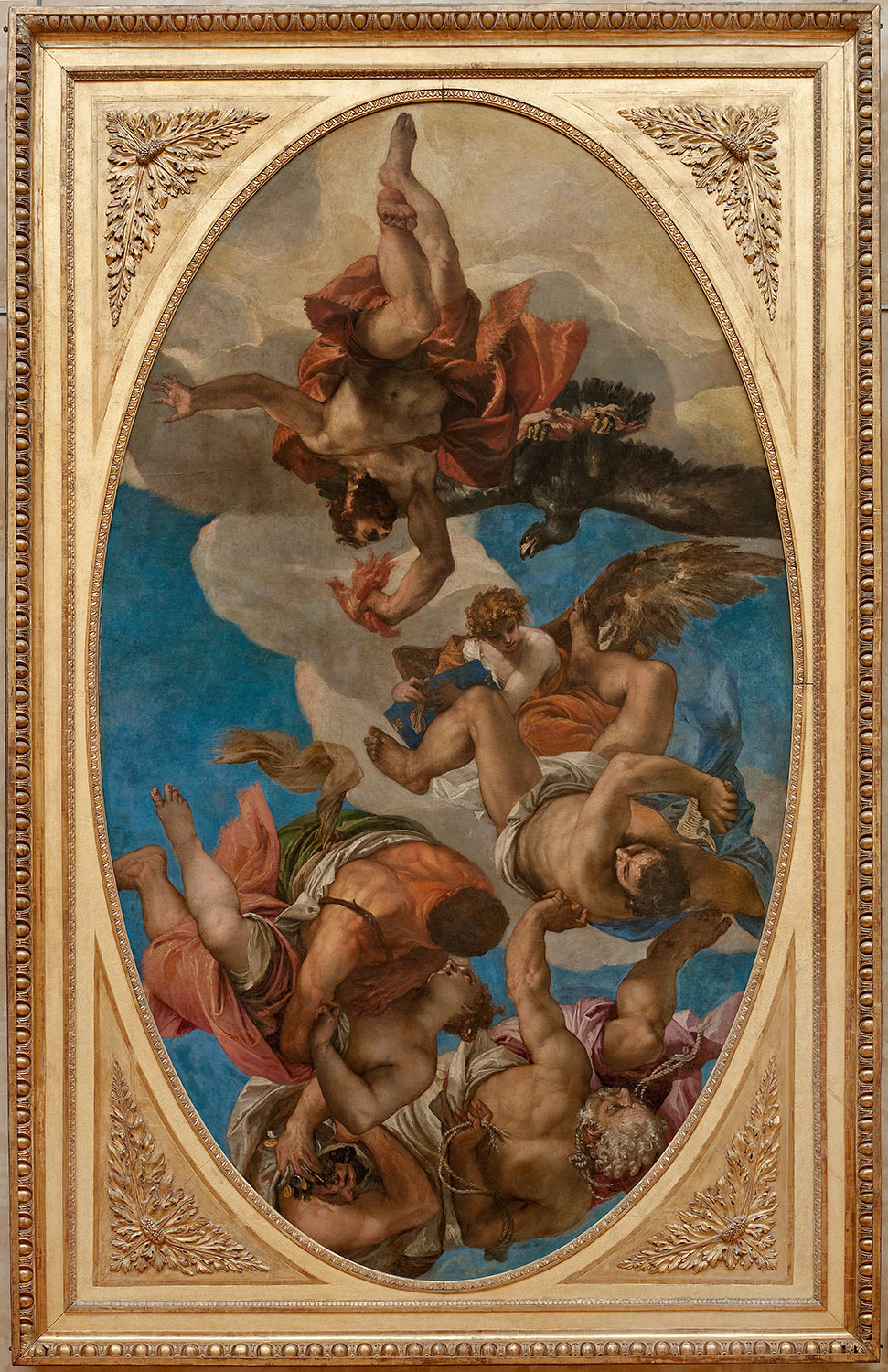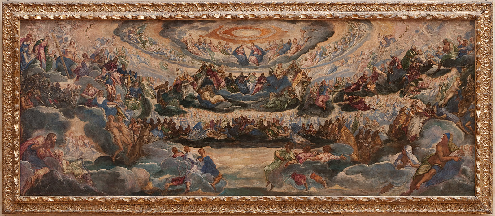 In 2019, the Salle des États underwent the latest in a series of embellishments when its walls were repainted a deep midnight blue, heightening the contrast with the rich palette of reds, yellow, oranges and greens in the Venetian masterpieces on display in this room.