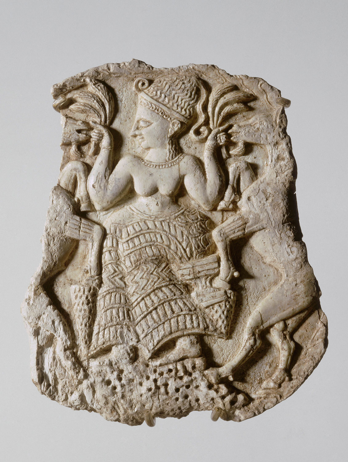 Mostly discovered during French-run archaeological excavations, the works bear witness to the artistic talent that flourished in this meeting ground of the Mediterranean world and Asia, where many influences converged. This crossroads between Egypt, Mesopotamia, Anatolia and the Aegean world gave rise to prosperous cities like Byblos and Ugarit. Statues, stelae and mythological texts evoke the religious world of kingdoms mentioned in the Bible. Ivory boxes, golden cups and jewellery speak eloquently of flourishing artistic activity.